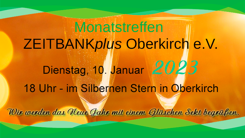 Wir laden Euch herzlich zu unserem ersten Monatstreffen in 2024 ein. Wir werden das Neue Jahr mit einem Glas Sekt begrüßen und uns überlegen, was wir im laufenden Jahr gemeinsam unternehmen wollen. Eure Ideen und Wünsche dazu sind herzlich willkommen.