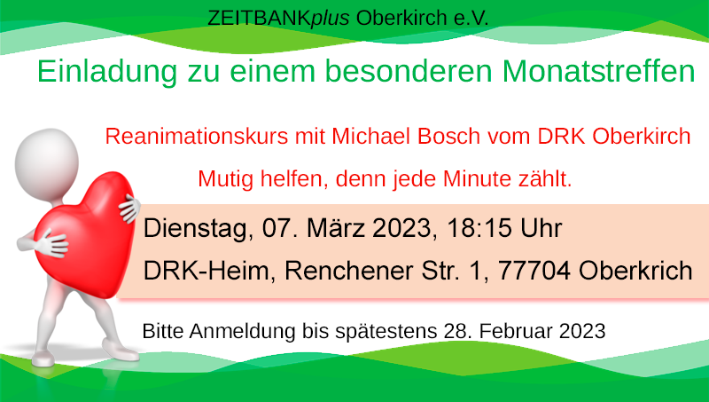Bei unserem Monatstreffen im März bietet uns Michael Bosch vom DRK Oberkirch einen Reanimationskurs an.