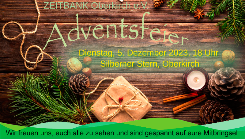 Zum Monatstreffen im Dezember gestalten Carola und Hans eine kleine Adventsfeier. Alle Mitglieder, die etwas zum Adventsabend beisteuern wollen, bringen etwas mit für alle 36 Mitglieder, was alles zusammen in eine mitgebrachte Keksdose passt, Eurer Fantasie sind keine Grenzen gesetzt.