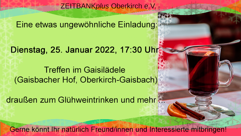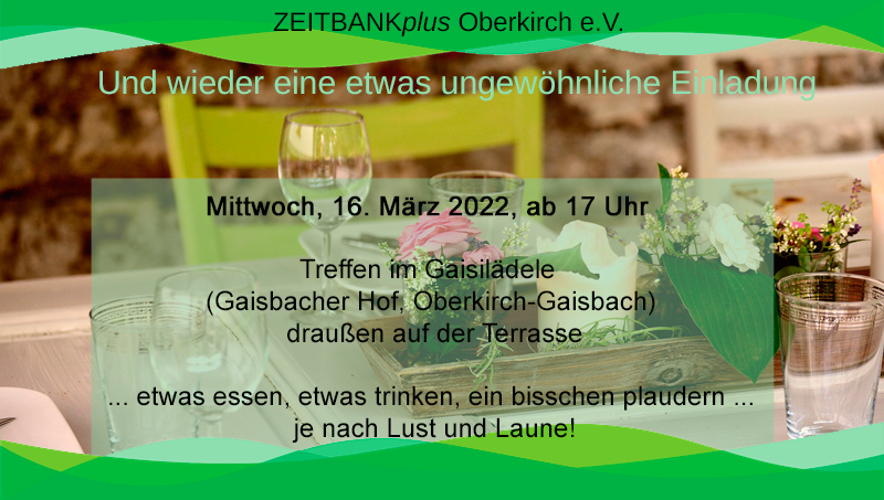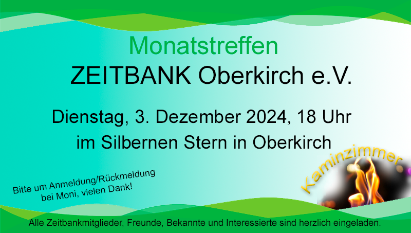 Wie immer sind auch Freunde, Bekannte und an der Zeitbank Interessierte herzlich eingeladen.
