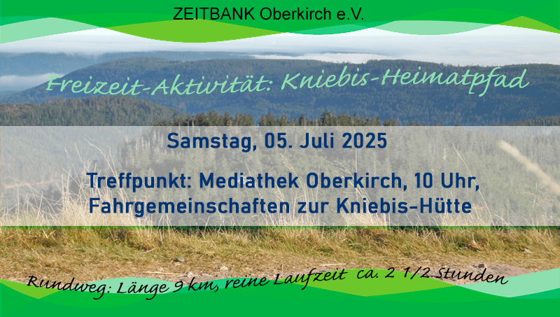 Unsere geplante Wanderung findet nun am Samstag, den 5. Juli statt. Wir treffen uns um 10.00 Uhr am Parkplatz Mediathek Oberkirch, um Fahrgemeinschaften zu bilden. Anschließend Fahrt zur Kniebis-Hütte auf den dortigen Parkplatz.